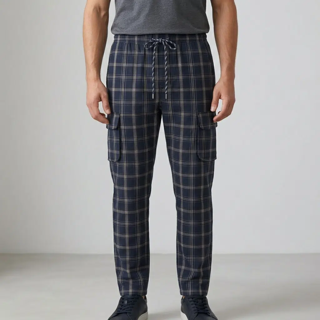 Pure Cotton Check Trouser – Sporty Dark Blue & Tuna